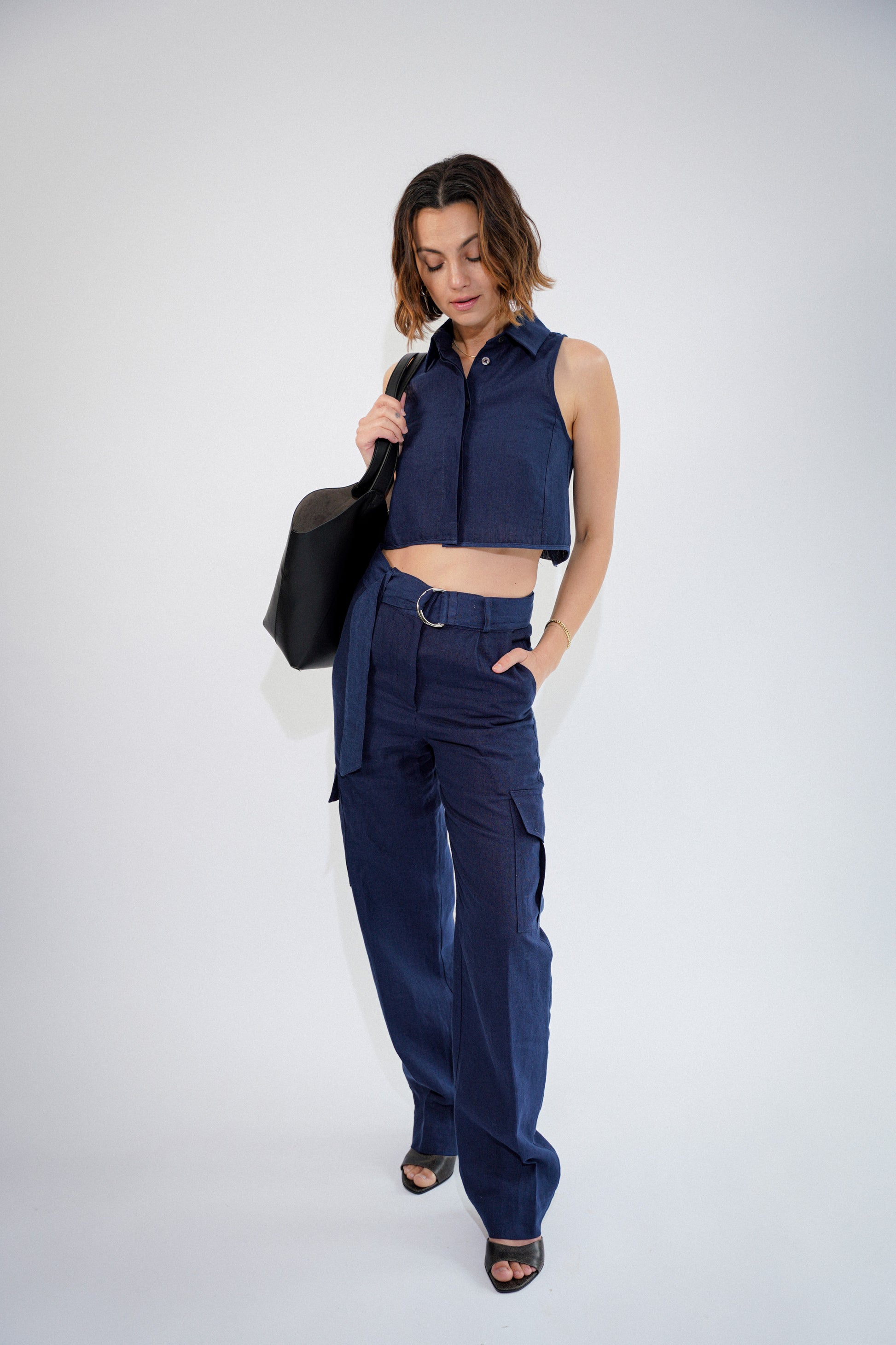 We created a breezy structured linen top for a put together yet relaxed look. Paired back to our cargo pant for a full set will give people outfit envy. Not everyone can look cool, comfortable and put together all at once. If a full set isn’t for you, try it with your favorite summer denim. This is an ESYA wardrobe essential, it goes everywhere with us because it makes us feel like we can go anywhere with it.