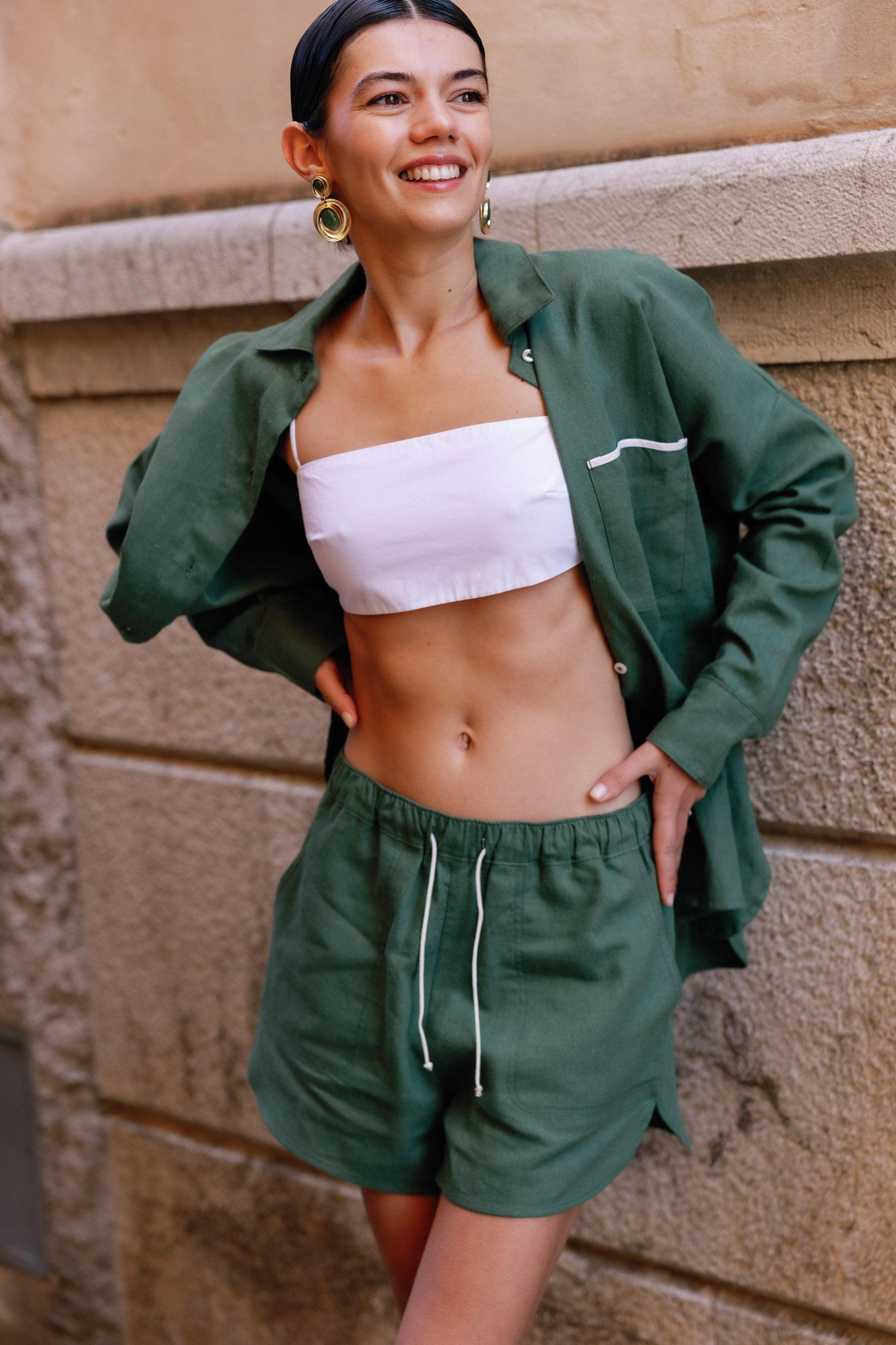 The Cardón Short is a heightened version of the boyfriend, boxer, pool short trend. With a little more structure, pockets, and an elegant contrast ivory drawstring, it bridges the gap between lounge and lux. Pair it back to the Cardón Shirt for the full ensemble. Great as a Spring or Fall transitional piece with a white or black boot.