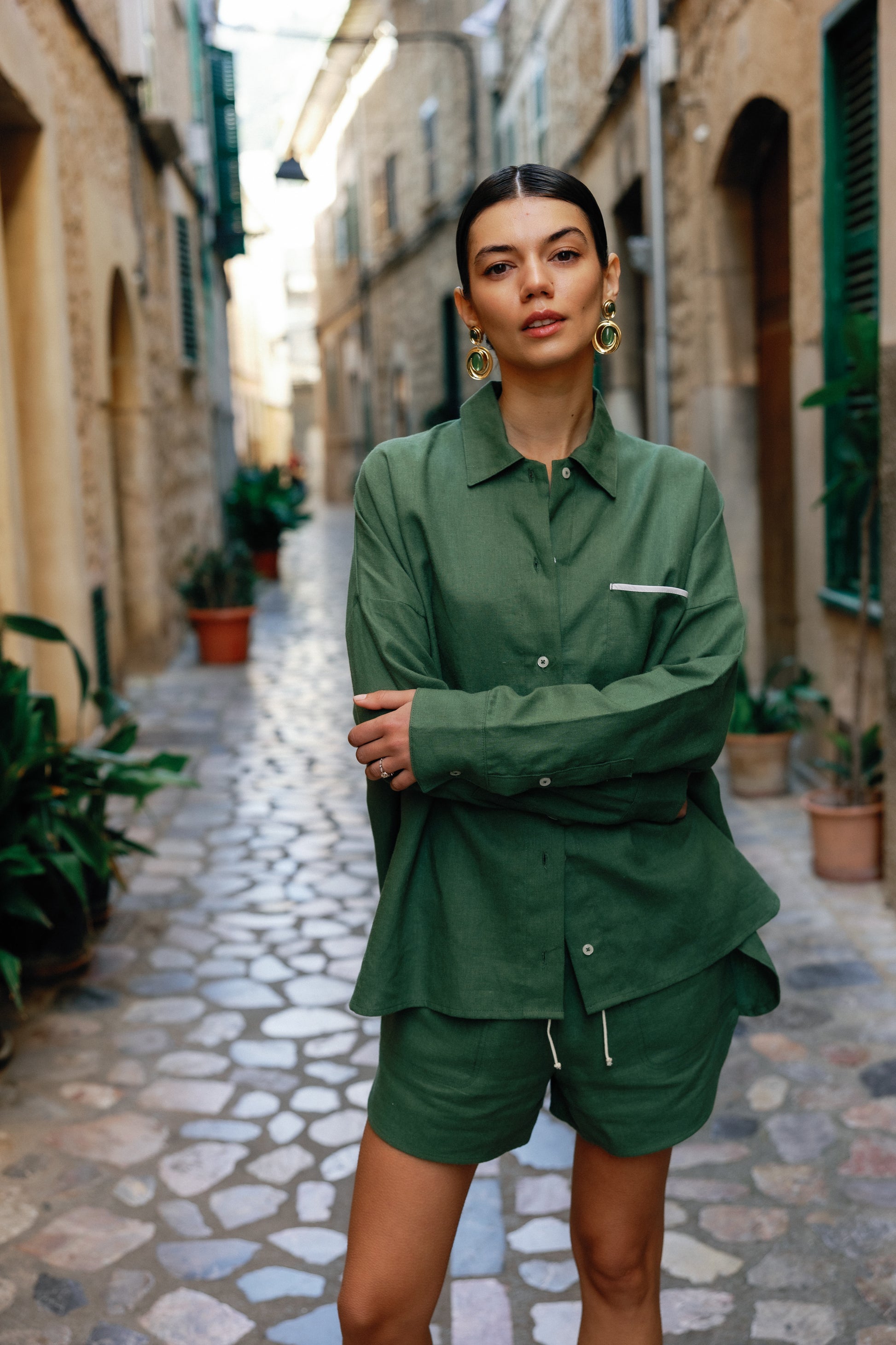 We don’t just make pieces we love—we make the ones we wear constantly... and then make them better. The Cardón Linen Shirt is our answer to a transitional button down shirt in a gorgeous green. Designed with a drop shoulder, a perfectly oversized silhouette, and made in a soft, low-wrinkle linen, it’s the shirt you throw on without thinking twice.