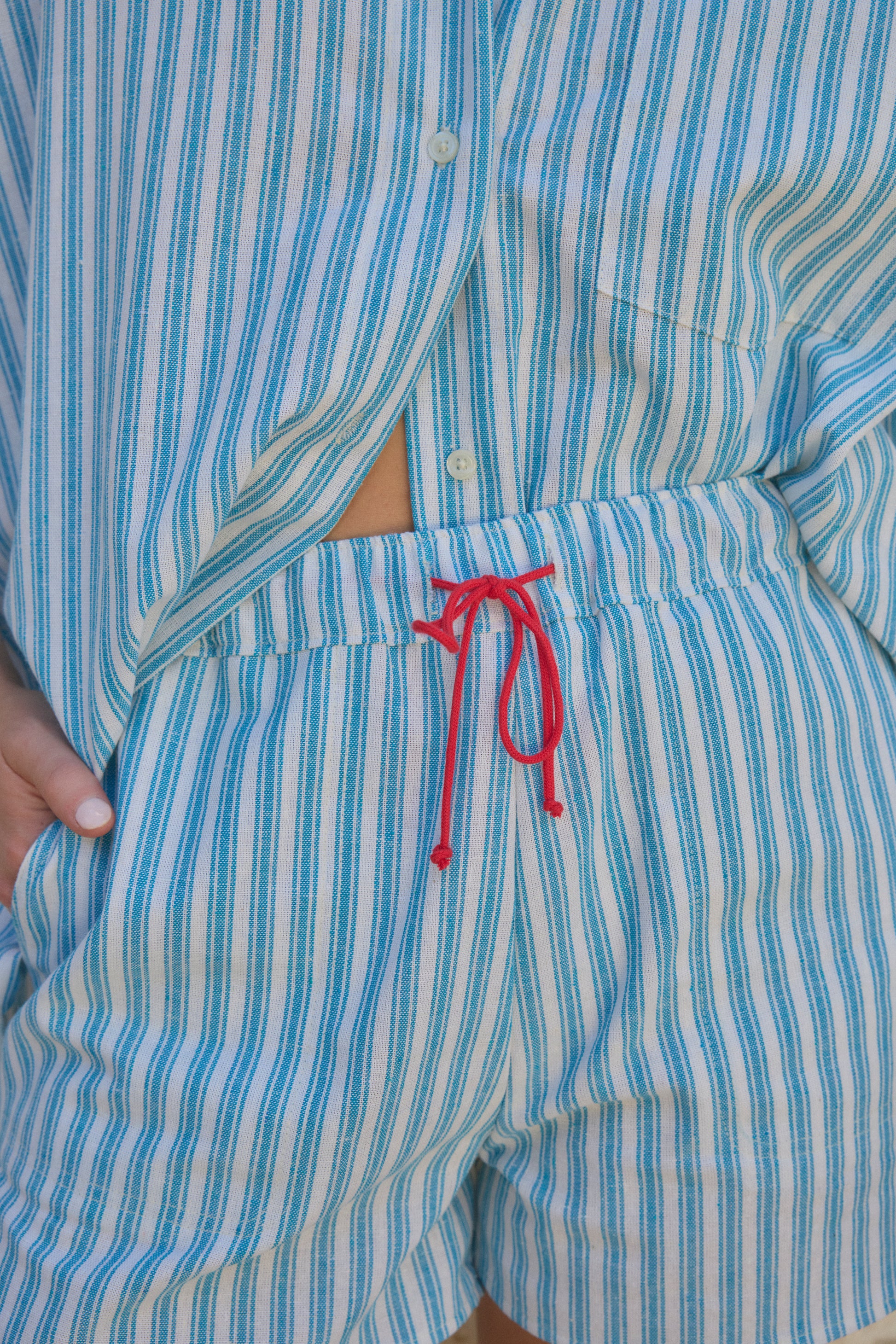 The Cooper Short is our elevated take on the laid-back boxer short trend—think poolside ease meets tailored polish. Designed with just the right amount of structure, roomy side pockets, and a bold red drawstring for an unexpected pop, these shorts bridge the gap between lounge and luxury. Pair it back to the Cooper Shirt for the full ensemble or wear with a white racerback tank.